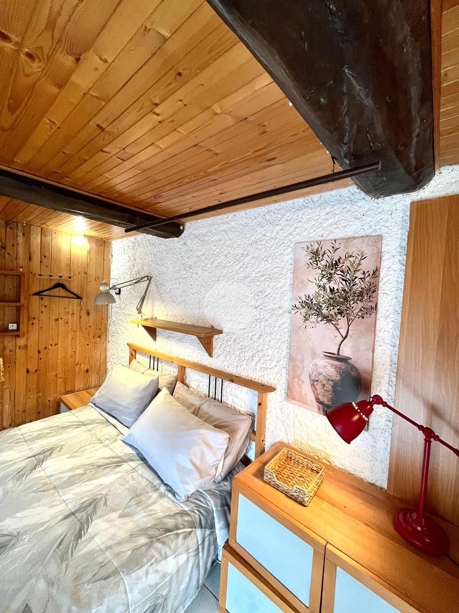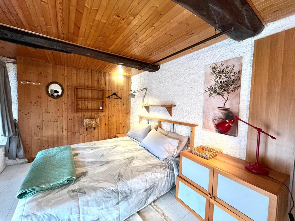 La zona notte comprende una camera matrimoniale al piano principale e una seconda camera situata al piano superiore con secomndo accesso privato, perfetta per ospiti o come studio. Il bagno è dotato di un pratico antibagno adibito a lavanderia.
